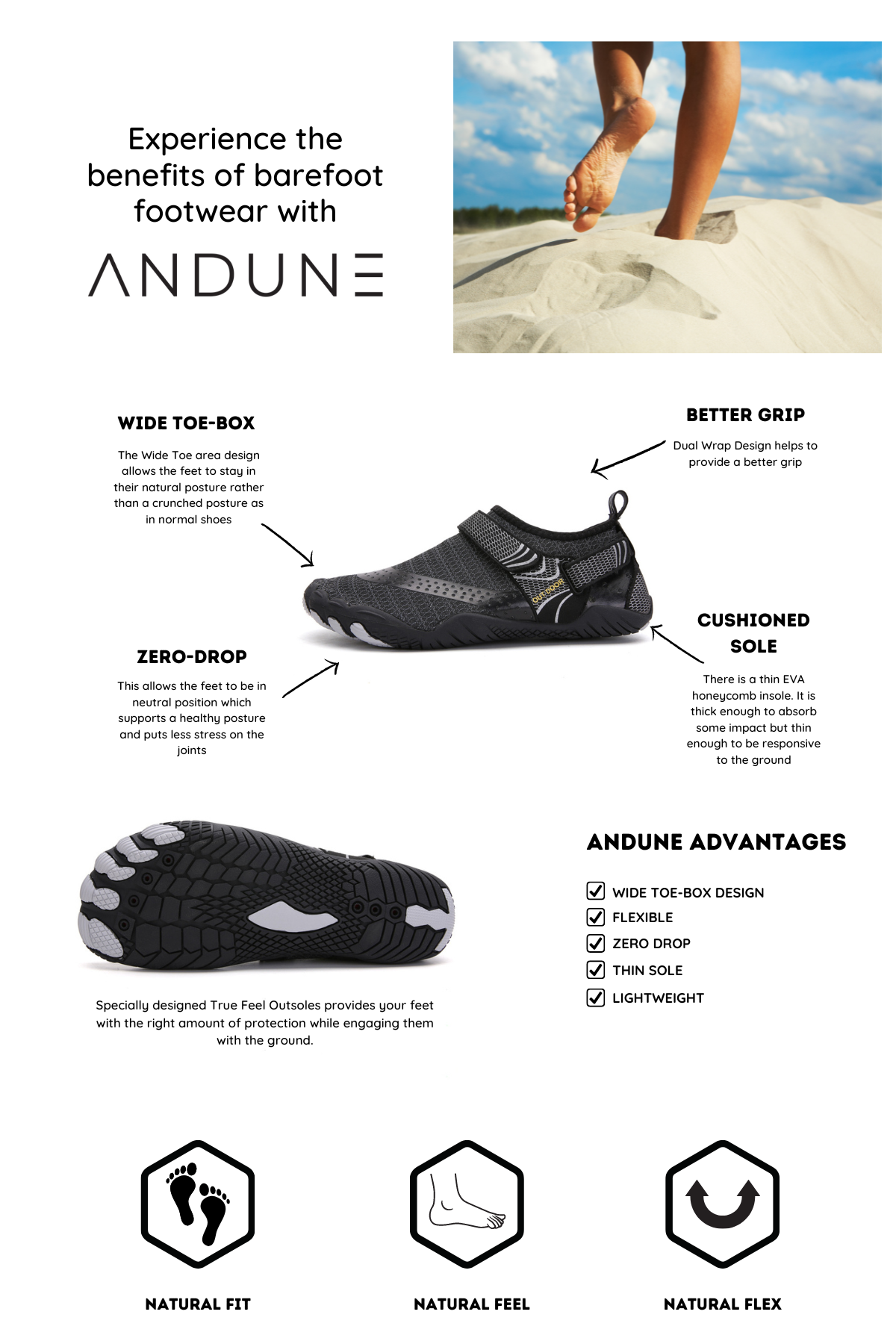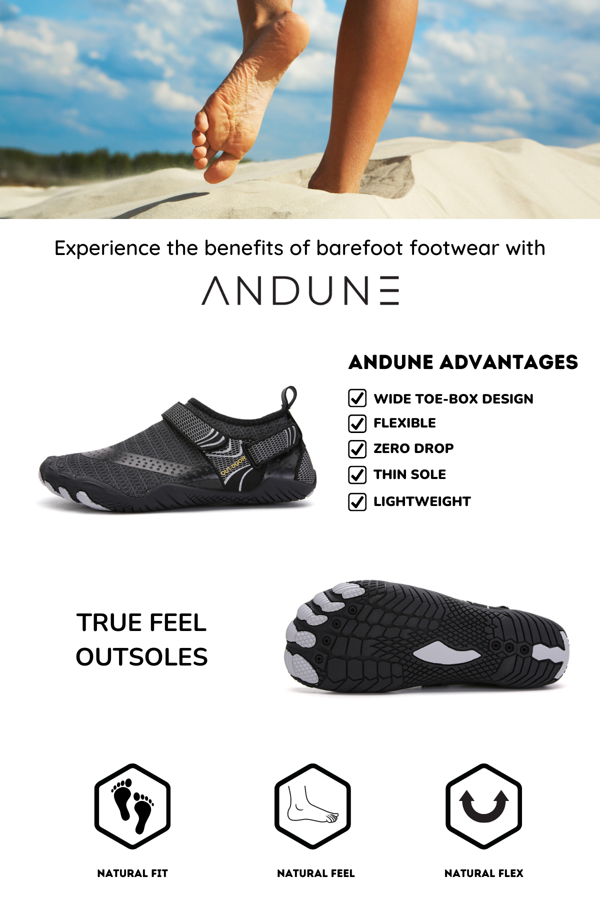 ANDUNE Men’s Barefoot & Minimalist Cross Training Shoes – Ultra Light Black Bolts