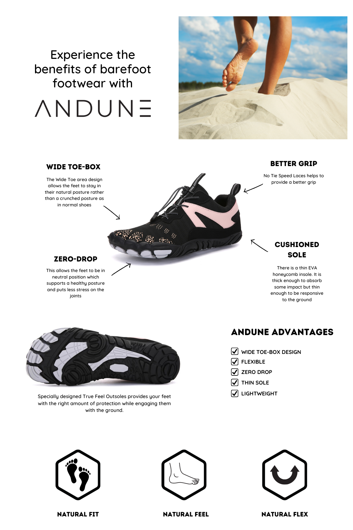 ANDUNE Women’s Barefoot & Minimalist Cross Training Shoes – All Terrain Black Breeze
